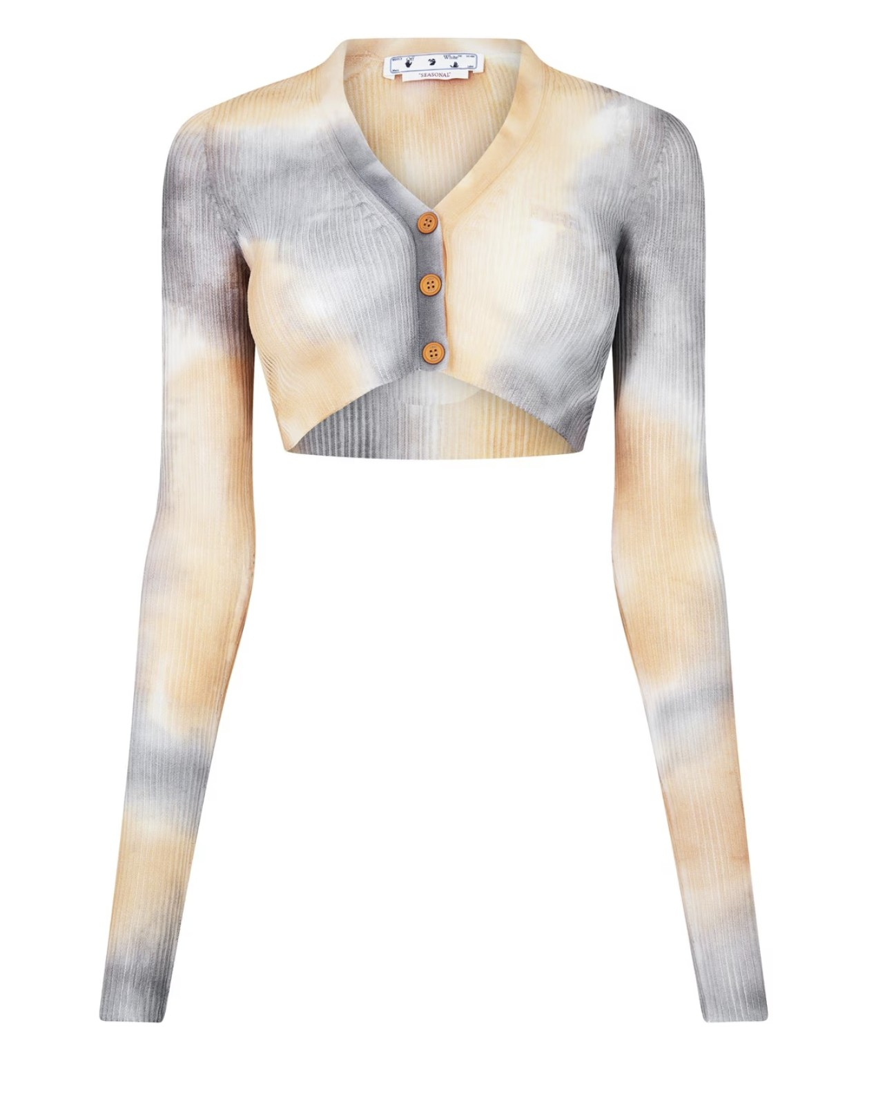 ✔ Design inovator Off-White – reinterpretare modernă a cardiganului clasic.