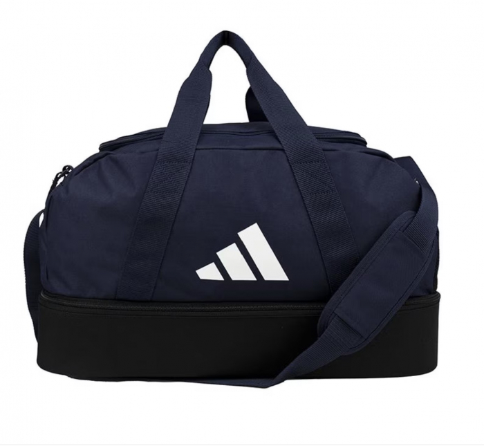 Geanta sport Adidas Tiro cu cumportiment separat pentru incaltaminte si buzunar lateral, capacitate 30 litri.