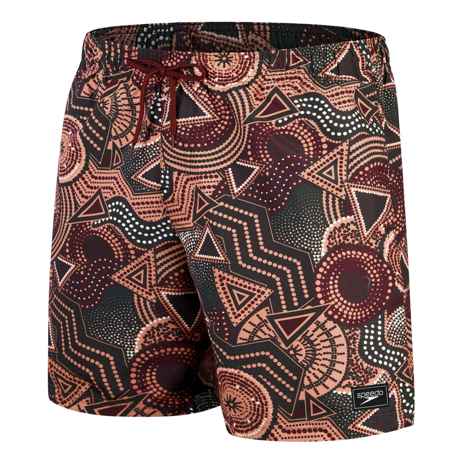 Inspirati de piețele artizanale de pe plaja Bondi, acesti pantaloni scurți de baie de prezintă un model îndrăzneț de buline în tonuri de roșu pământiu și negru. Realizați dintr-un material moale, periat, cu buzunare laterale, acești pantaloni scurți sunt perfecți pentru plajă și piscină, oferind o senzație de lejeritate atât în apă, cât și în afara ei. Șnurul din talie permite ajustarea pentru un confort și o fixare optimă.